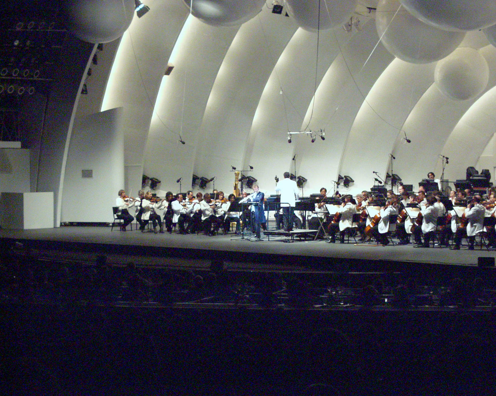 You can get the Windows 2000 Service Pack 3 at http://download.microsoft.com/download/ I used the satellite to download it: the file is 130 megabytes. Once I had it, I transferred it to a number of win2k machines and installed it first on Fergie, which is a machine I take to the beach and which Niven uses when he is here: since he isn't here and I am, this one was a good testbed for the installation. It installed without any glitches, and the machine ran just fine, so I decided to put it on Regina, which is the system that does my real communications here. Regina, a Compaq SP750 Professional Work Station dual processor Pentium III 750, will be retired shortly for Principessa, an extremely fast Pentium 4 I built from an Intel motherboard, but for the moment Regina is still the main system in the house. I did the backups, and then cleaned a huge pile of cruft out: any communications system gets all kinds of spyware and other unwanted junk. More on that in the column. The bottom line is that I'm using Regina with W2K Sp3 to write this and for my email, and everything is fine. The system is a bit crisper than yesterday but that's probably more due to my repeated applications of cruft cleaning than SP3. But see the WARNING regarding Promise Technology controller boards. Hollywood Bowl last night. Excellent program. They opened with Strauss's Don Juan which was a bit marred by the brass not being together for part of the crescendo, but overall good. Then the best part, featuring Sir James Galway, the only person I know of to get a knighthood for playing the flute. The program included a Flute Concerto by William Bolcom, who was Roberta's classmate in Seattle. This lyric concerto was written for Galway. They also did some "confections" as "encores" although since they were clearly rehearsed the encores were more like treats not in the program. The second half was Dvorak's 7th which isn't played enough, and the Philharmonic does Dvorak well. A nice evening. That's Sir James with the golden flute.