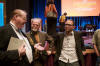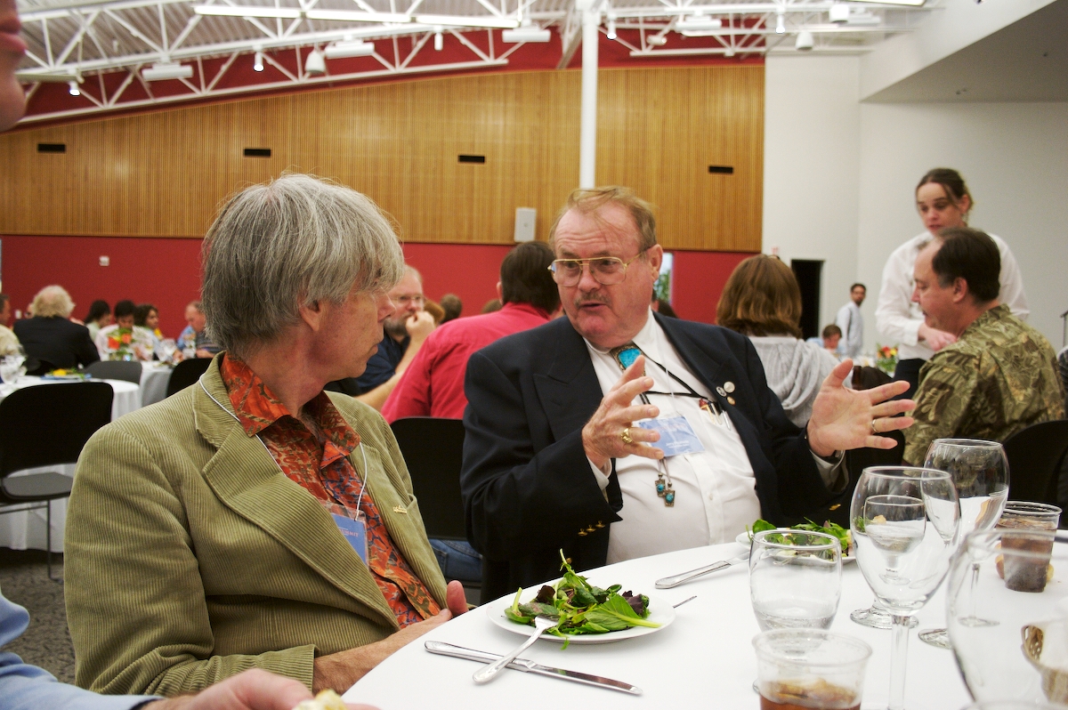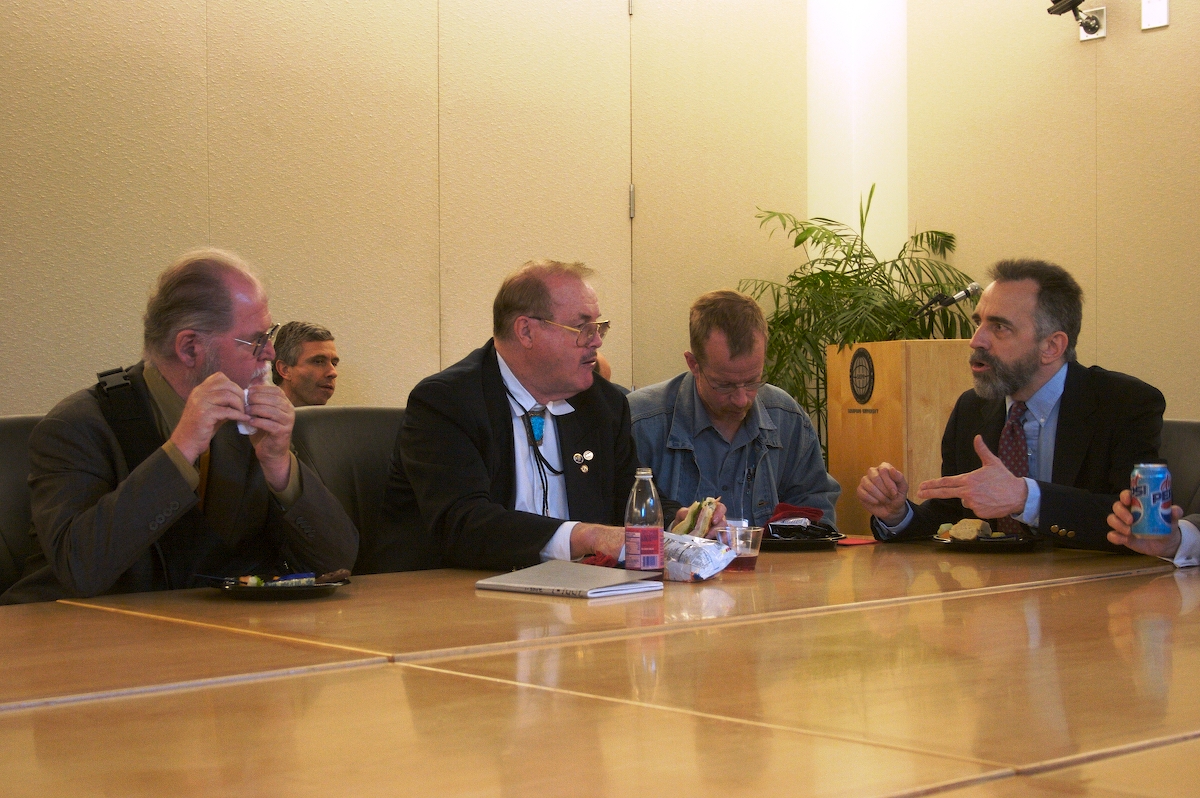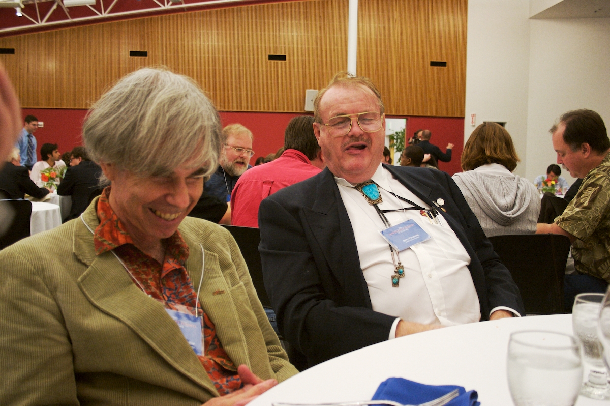 Photos left to right: John McCarthy listens to the presentation; McCarthy with Niven and Pournelle; Me with Peter Glaskowsky; Two views of Dinner with Doug Hofstadter.
