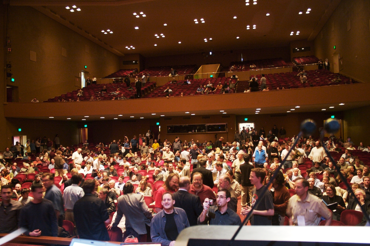Larry Niven and I drove up to the Stanford Singularity Summit. Shortly afterwards I did a quick report which was sent to subscribers. This expands that report and adds pictures. I wish I had time to do something more complete. All photographs courtesy of Roland Dobbins.